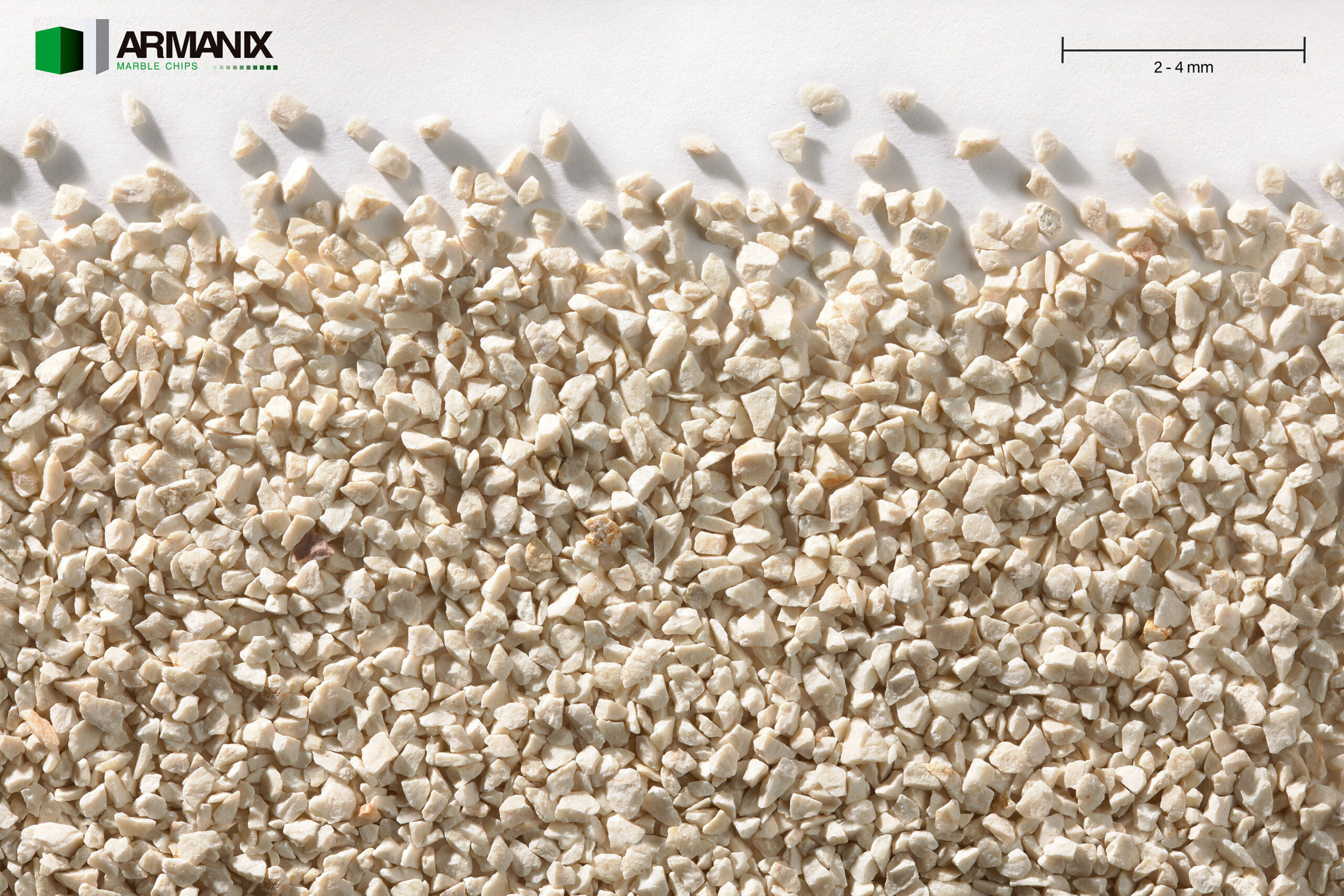 Nuestros exquisitos Chips de Mármol Crema Marfil ofrecen elegancia atemporal y durabilidad. Con un tamaño de 2 mm a 4 mm, son ideales para crear fachadas de mortero monocapa refinadas y revestimientos de suelos interiores y exteriores con resinas acrílicas y para acabado de terrazo. El suave tono crema aporta calidez y sofisticación, mientras que el tamaño uniforme asegura un acabado impecable. Vienen lavados, clasificados, con una humedad del 30% y se presentan en sacos de 25 kg o big bags de 1.300 kg, combinando belleza natural con una durabilidad excepcional para realzar diseños arquitectónicos.